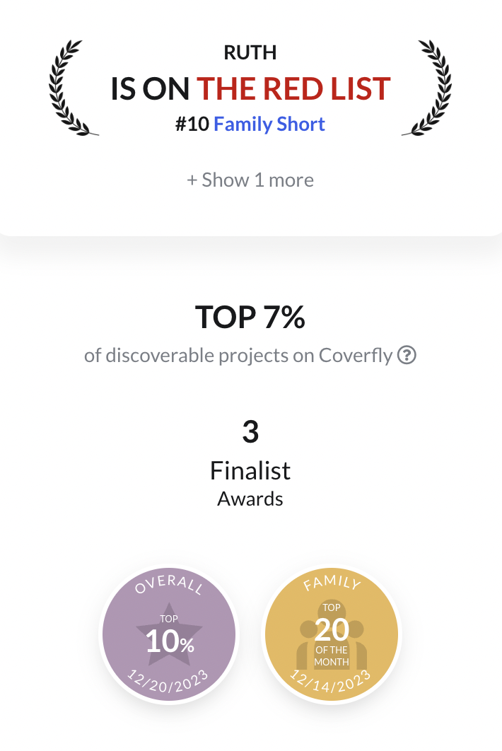 RUTH is officially on The Red List and in the top 7% of projects on Coverfly